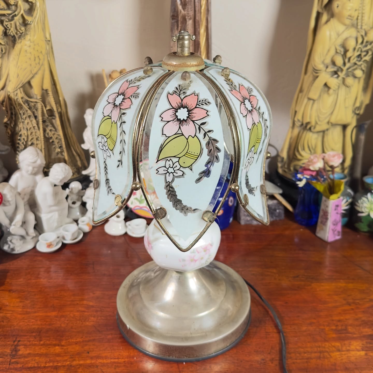 Antigo Abajur de Toque em Porcelana com Cúpula Floral