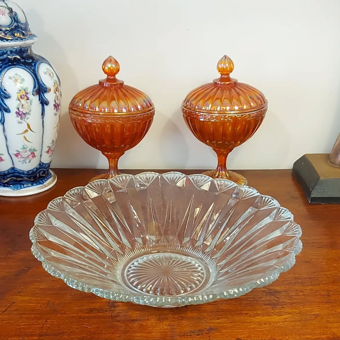 Antiga fruteira de centro em vidrão trabalhado, linda e impecável!