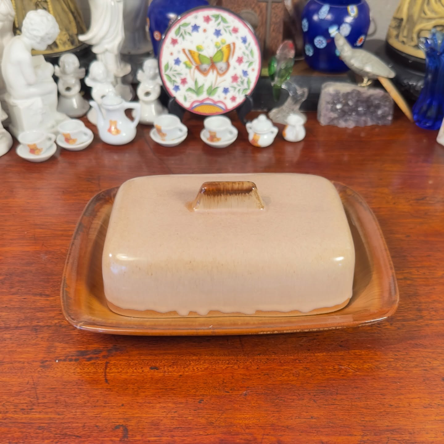 Antiga mantegueira Oxford em cerâmica esmaltada, linha Harvest. Apresenta degradê em tons de marrom e bege, característica marcante do design da época.