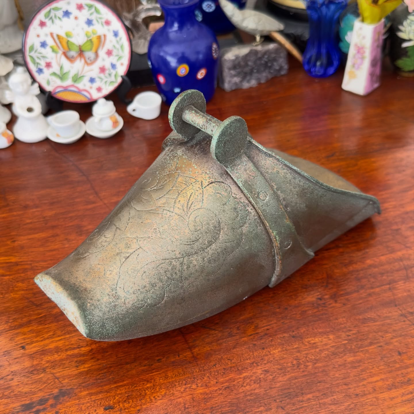 Antigo Estribo de arreio, peça rústica reuse sugerido como cachepot de parede para pequenas plantas.