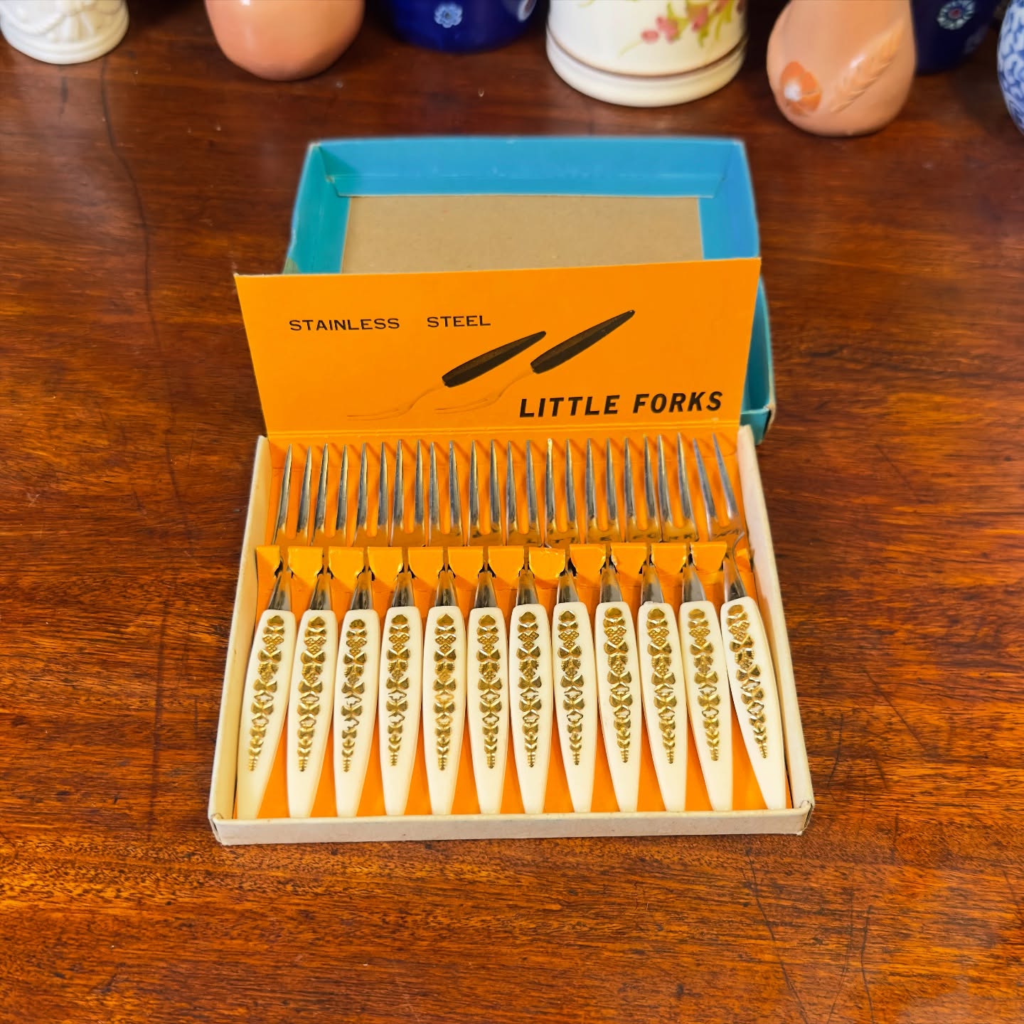 Antigo garfo petisqueiro, nunca usado e preservado em sua caixa original.