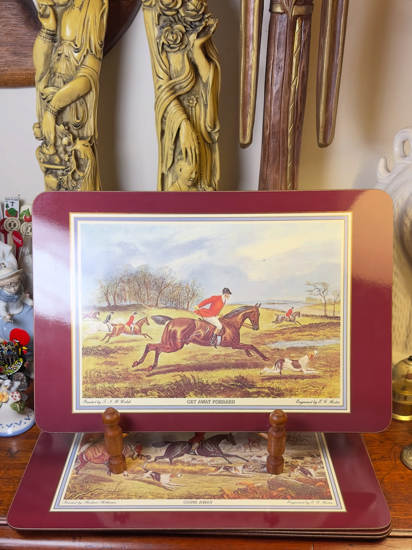 Antigo jogo americano de mesa antigo, tema de caça à raposa, tradição inglesa. Conjunto com 4 peças.
