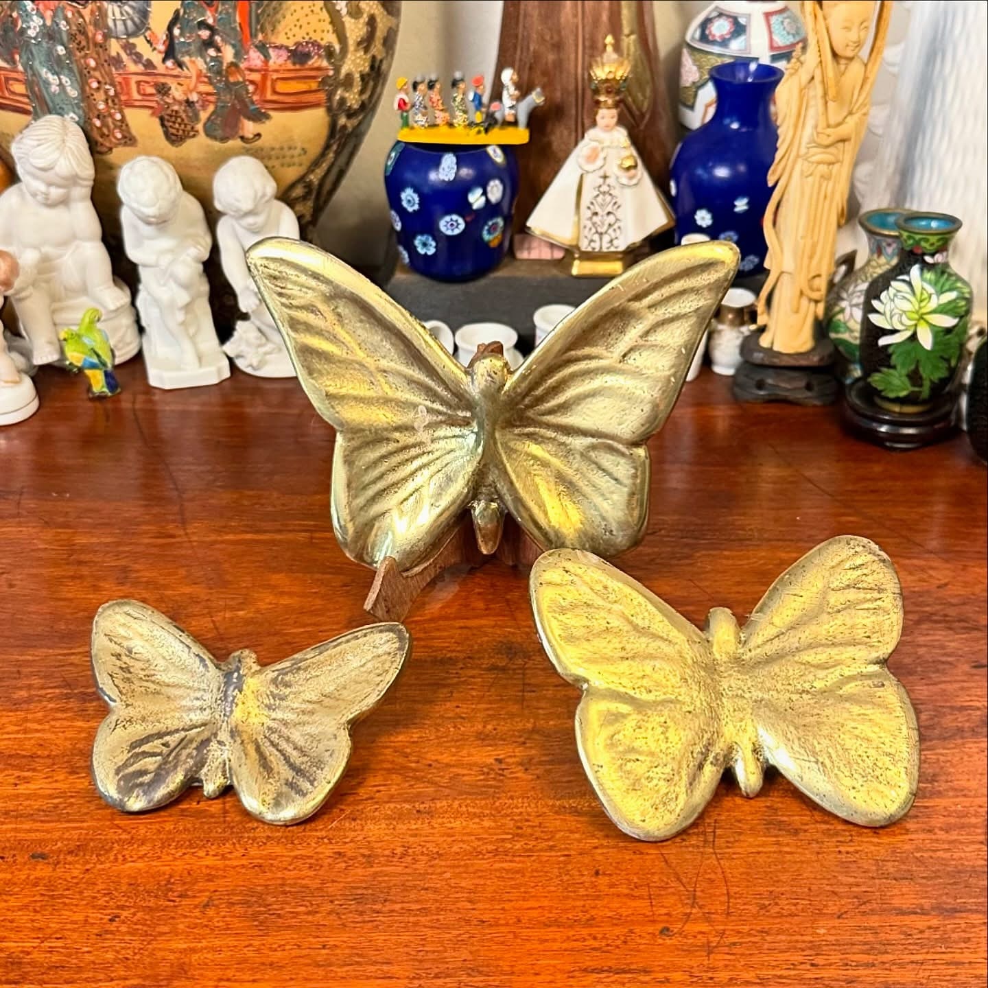 Elegante trio de borboletas em metal para parede, uma peça clássica e atemporal que remete ao charme e sofisticação de épocas passadas.