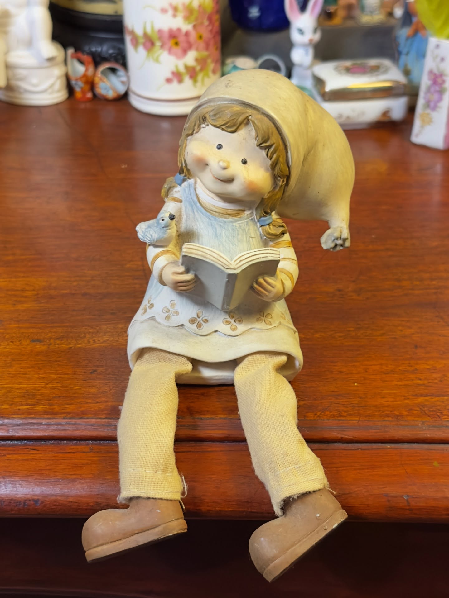 Bonequinha em cerâmica perna de pano, um toque de alegria na sua decoração!