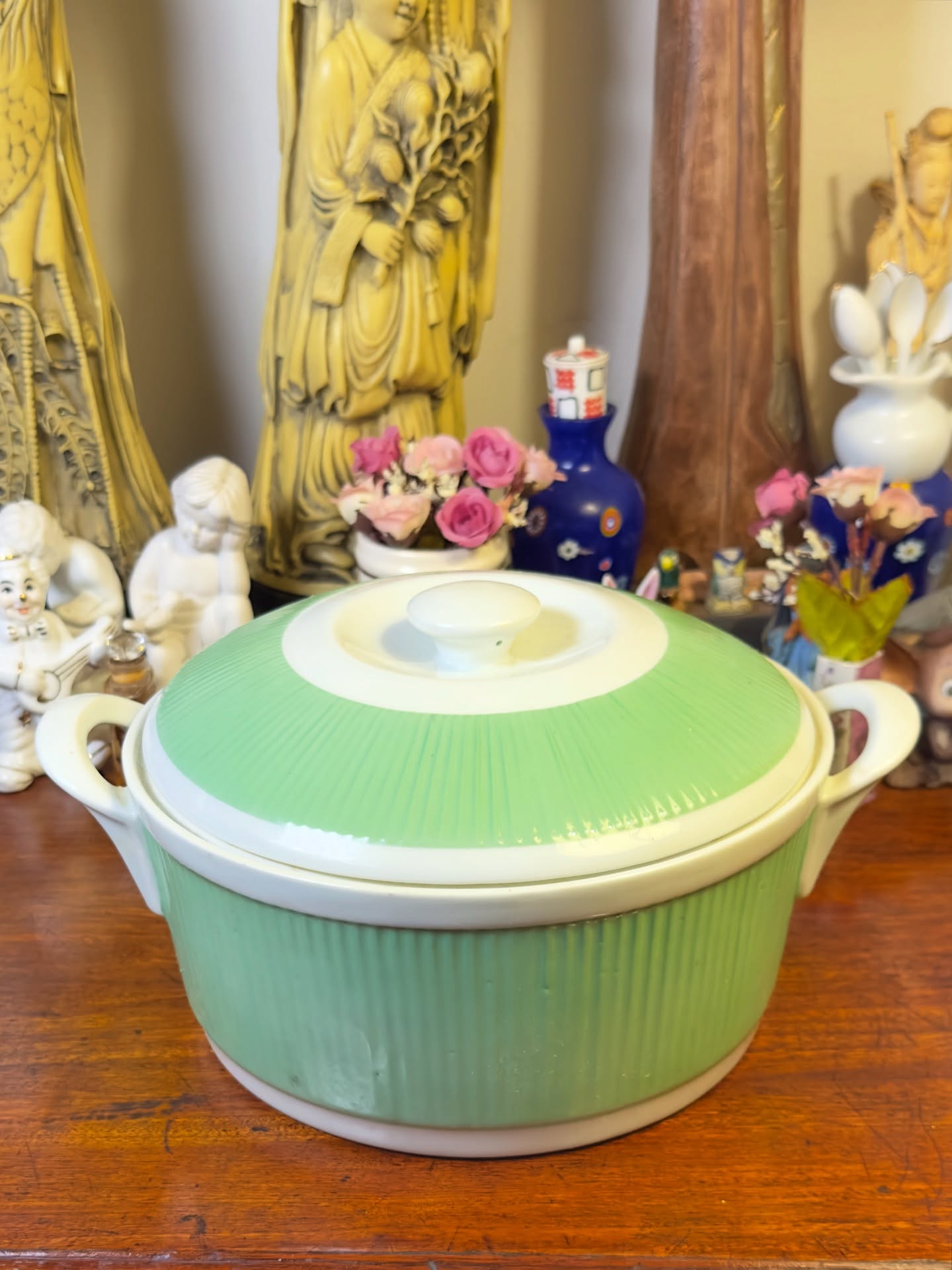Antiga e rara caçarola Calorama em porcelana Real, peça de estilo clássico e charme de outrora, um verdadeiro encanto, preservada em estado impecável, como nunca usada.