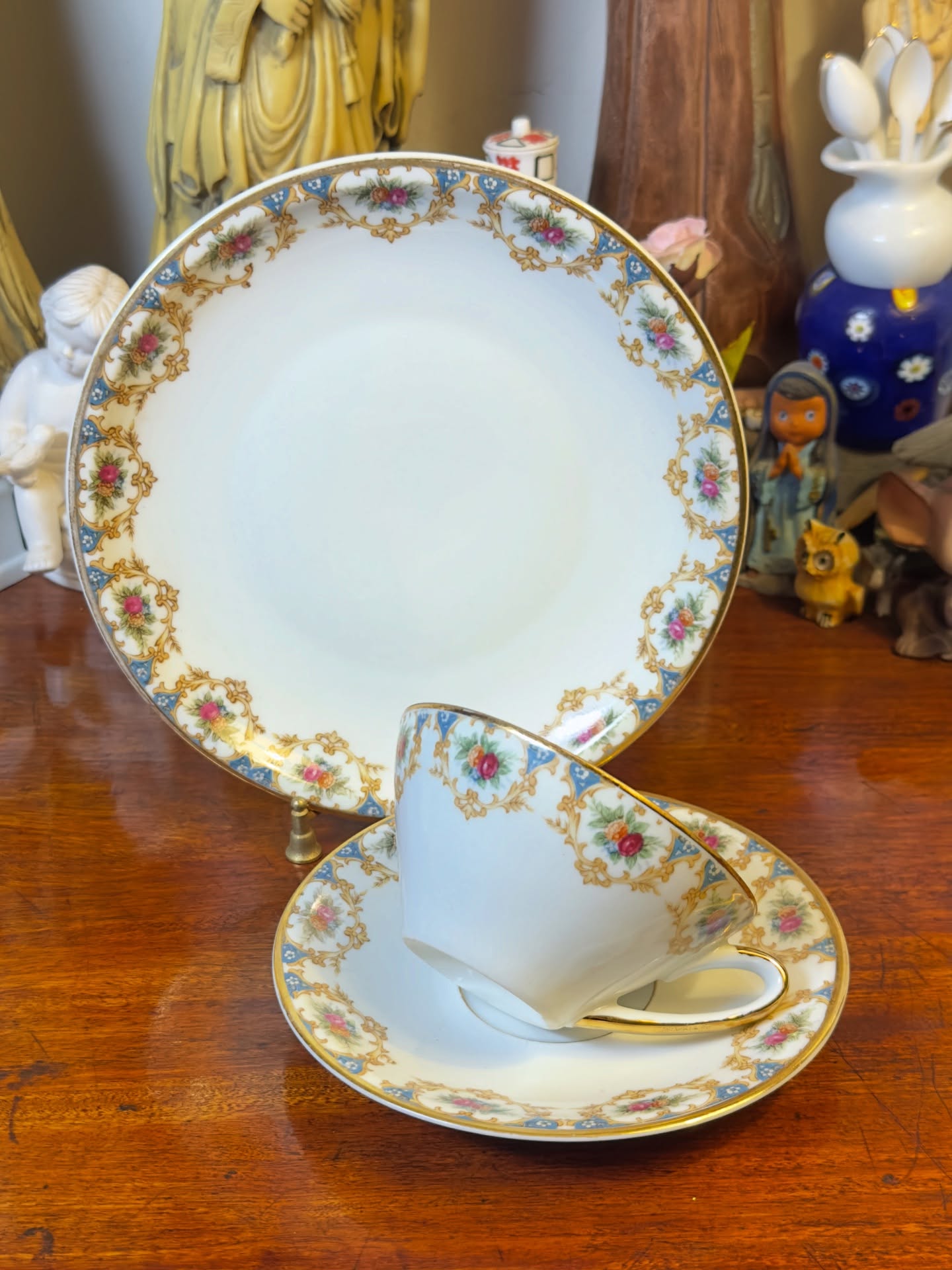 Elegante conjunto com xícara de chá e prato de sobremesa em porcelana Real.