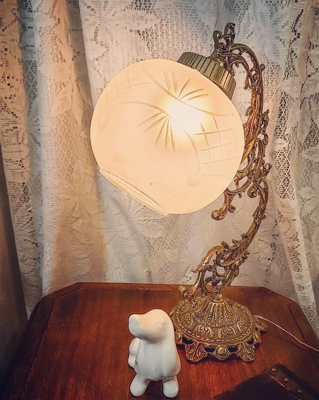 Lindo abajur em bronze com detalhes na estrutura