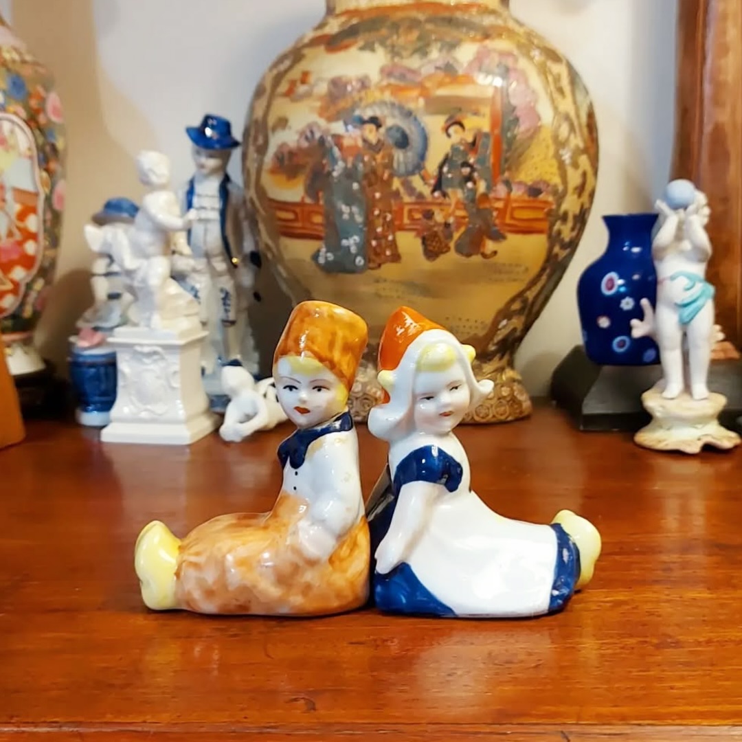Antigo par bibelô em porcelana Vieira de Castro.