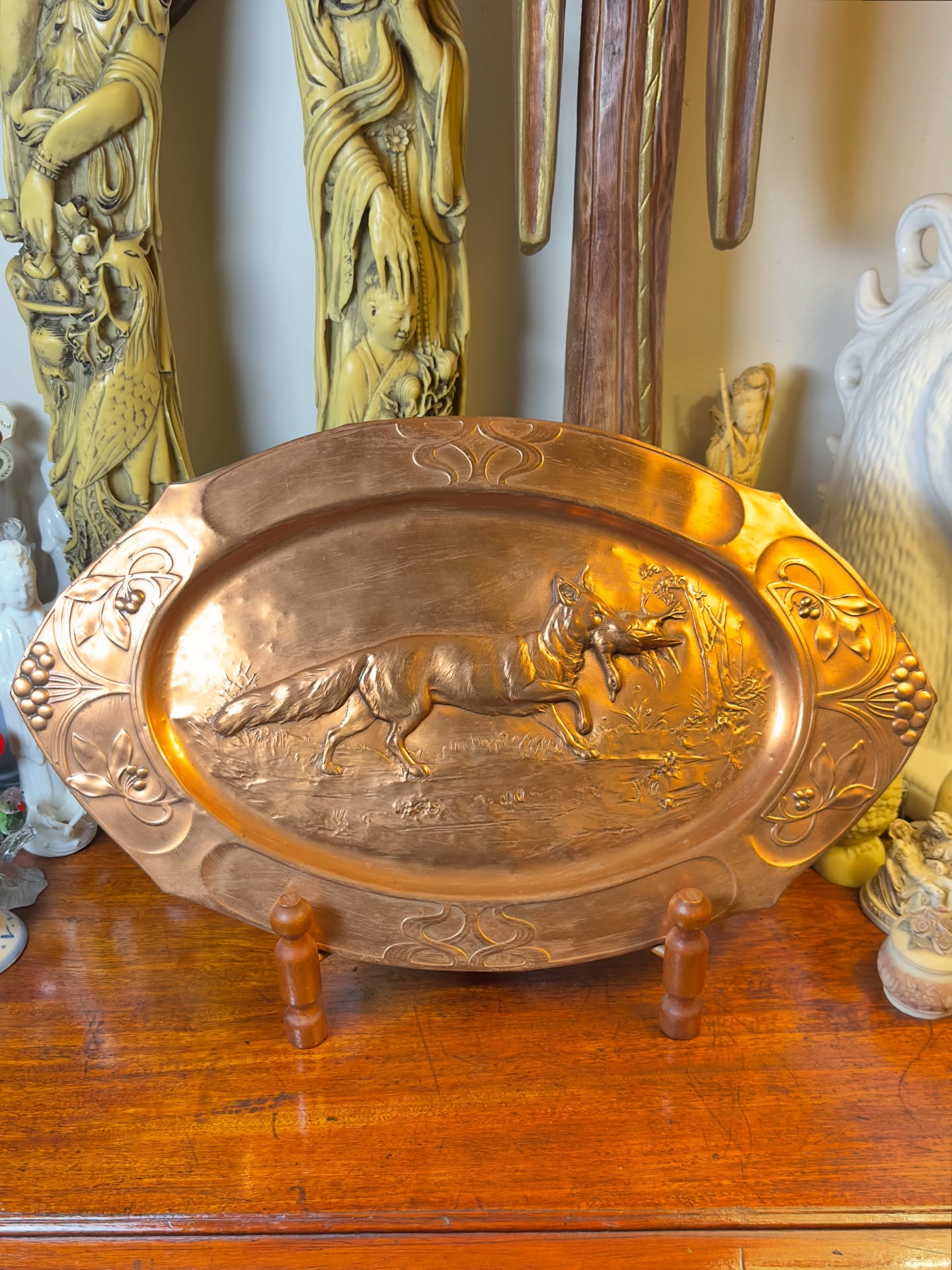 Placa decorativa de parede em metal, com elegante imagem de um lobo em destaque, peça de presença marcante e acabamento detalhado.