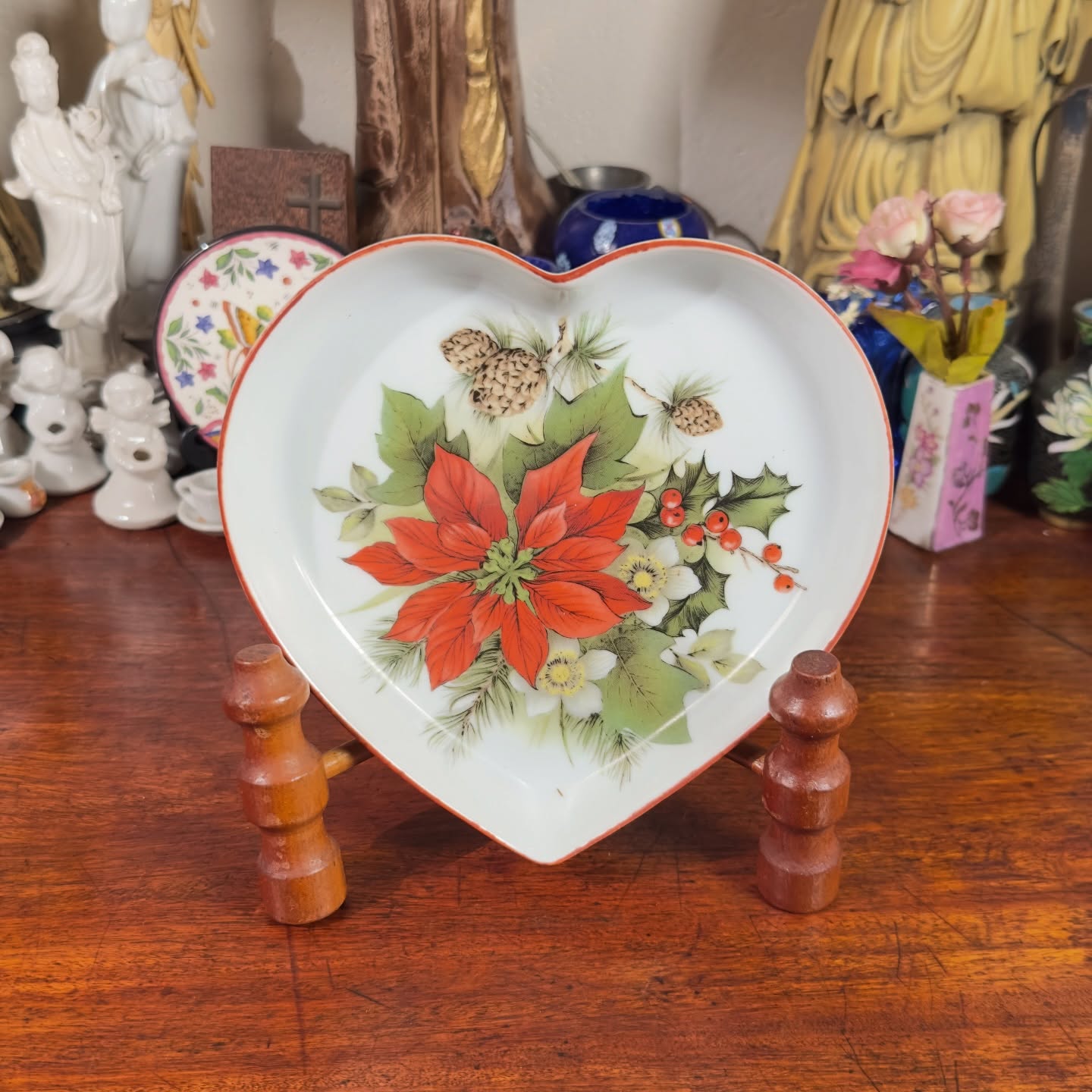 Delicado pratinho em porcelana no elegante formato de coração, peça charmosa e atemporal. Pode ser usado como despojador, petisqueira ou prato decorativo na parede, trazendo leveza e personalidade à composição. Não acompanha expositor de mesa.