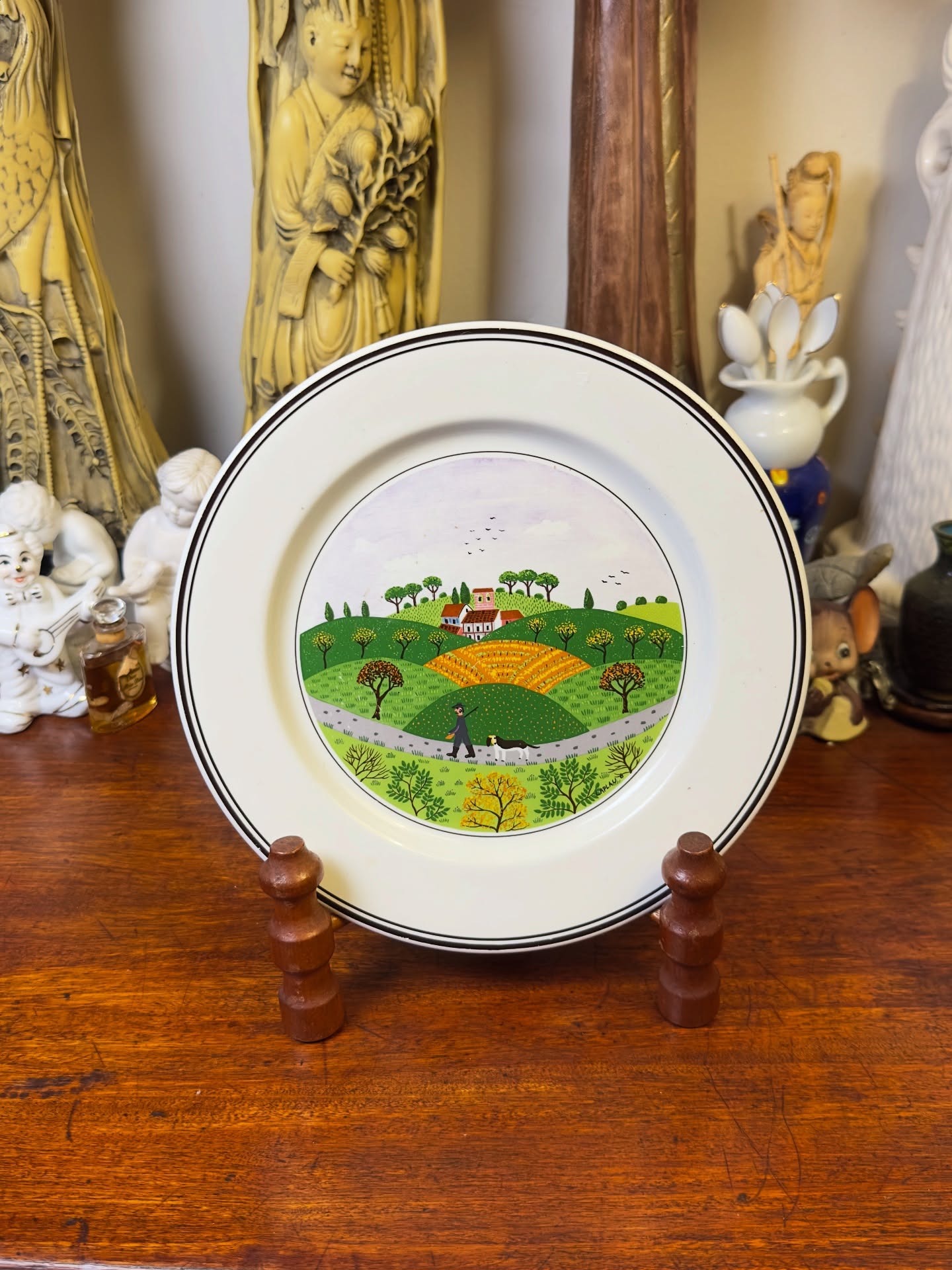 Prato em porcelana Villeroy & Boch, coleção Design Naif. Decoração colorida em estilo campestre, assinada por Laplau. Produzido em Luxemburgo, década de 80/90.